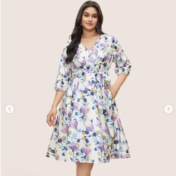 BloomChic Plus Size 4XL Floral Print Lantern Sleeve Dress us26