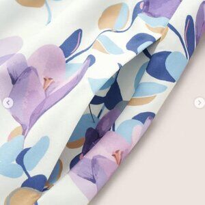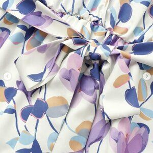 Elegant floral wrap dress featuring a beautiful blend of purple and blue hues. Perfect for any occasion.