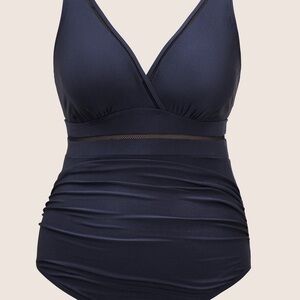 BloomChic Plus Size 4XL Solid Adjustable Straps Gathered One Piece Swimsuit