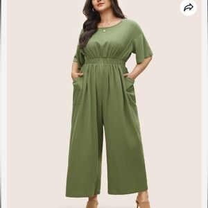 BloomChic Plus Size 4XL Solid Elastic Waist Patched Pocket Jumpsuit
