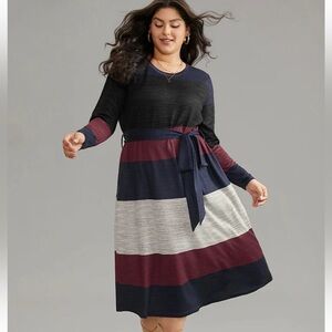 BloomChic Plus Size 6XL Colorblock Contrast Heather Belted Dress us30