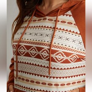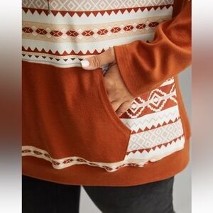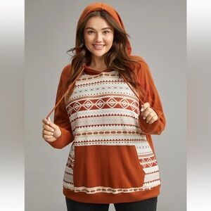 BloomChic Plus Size Boho Print Hooded Drawstring Sweatshirt