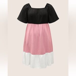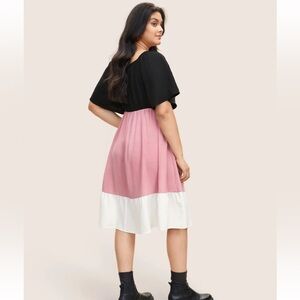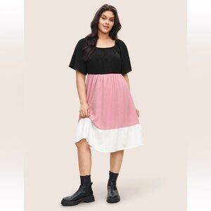 BloomChic Plus Size Colorblock Contrast Patchwork Gathered Raglan Sleeve Dress