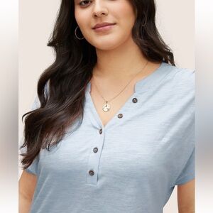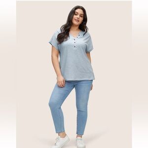 BloomChic Plus Size Cotton Solid Notched Dolman Sleeve T-shirt