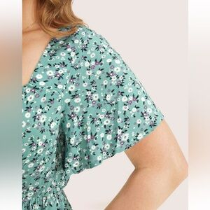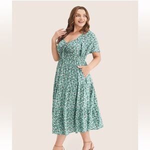 BloomChic Plus Size Ditsy Floral Drawstring Ruched Pocket Ruffle Tiered Dress