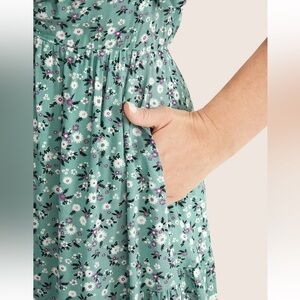 Plus Size Ditsy Floral Drawstring Ruched Pocket Ruffle Tiered Dress 2xL