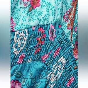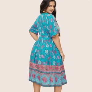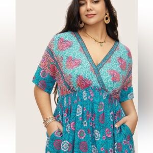 BloomChic Plus Size Floral Dolman Sleeve Ruffles Shirred Split Hem Dress