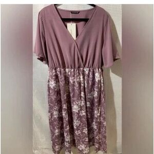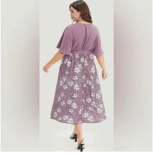 BloomChic Plus Size Floral Patchwork Pocket Belt Surplice Neck Ruffle Hem Dress