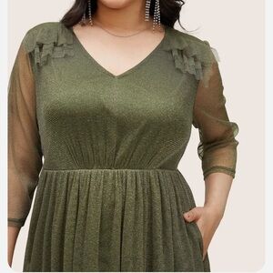 BloomChic Plus Size Flutter Trim Mesh Pocket Gathered Dress