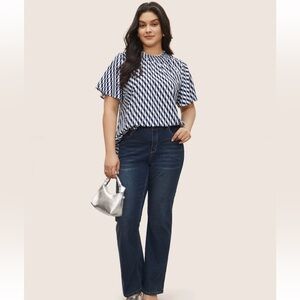 BloomChic Plus Size Geometric Mock Neck Shirred Ruffle Sleeve Blouse
