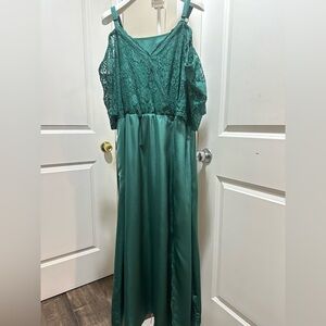 BloomChic Plus Size Guipure Lace Insert Cold Shoulder Split Party Dress