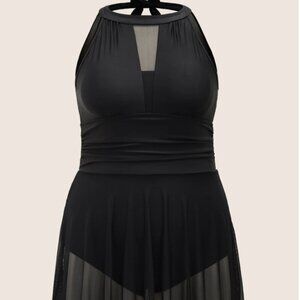 BloomChic Plus Size Knotted Back Mesh Insert Halter Swim Dress 2XL