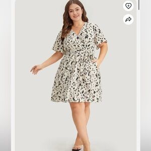 BloomChic Plus Size Leopard Print Belted Wrap Pocket Ruffle Sleeve Dress