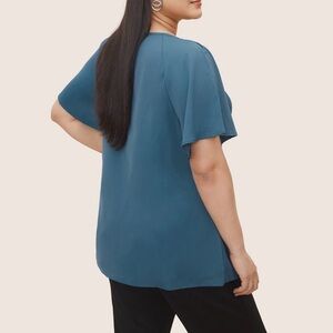 BloomChic Plus Size Plain Keyhole Knotted Front Ruffle Sleeve Blouse