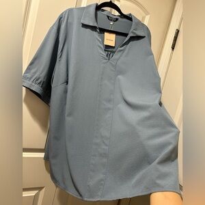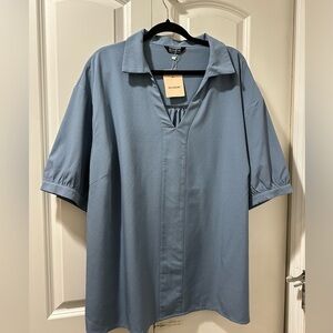 BloomChic Plus Size Plain Lapel Collar Gathered Puff Sleeve Blouse