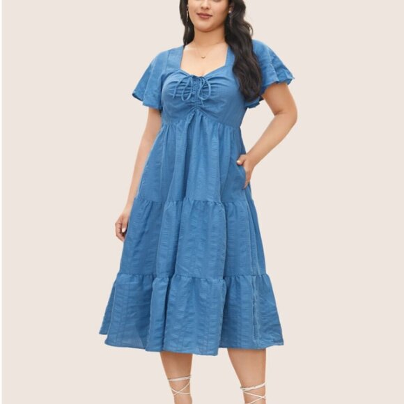 BloomChic Plus Size Plain Ruched Drawstring Pocket Ruffle Tiered Dress