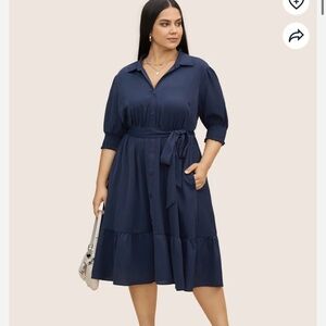 BloomChic Plus Size Shirt Collar Shirred Button Up Dress