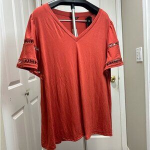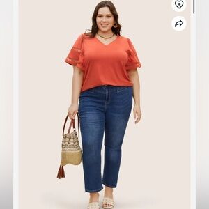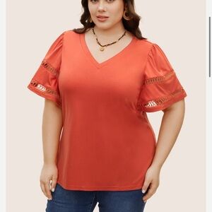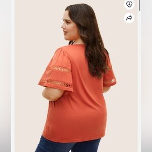 BloomChic Plus Size Solid Cut Out Patchwork Ruffle Sleeve T-shirt