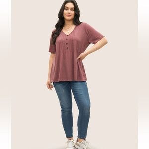 BloomChic Plus Size Solid Pleated Front Button Detail V Neck T-shirt