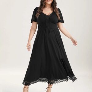 BloomChic Plus Size Solid Pocket Contrast Lace Split Maxi Dress