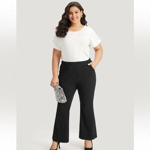 BloomChic Plus Size Solid Pocket Flare Leg Elastic Waist Pants