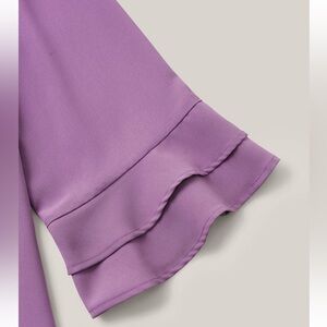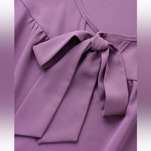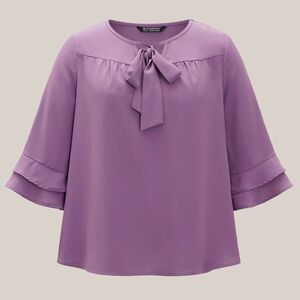 BloomChic Plus Size Solid Ribbon Tied Collar Bell Sleeve Blouse