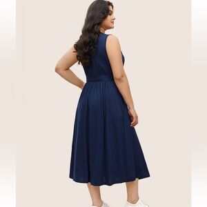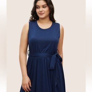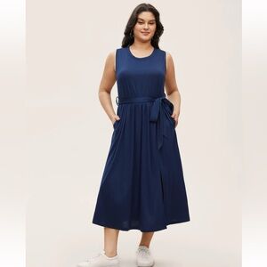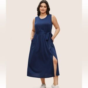 BloomChic Plus Size Solid Slit Hem Sleeveless Belted Dress