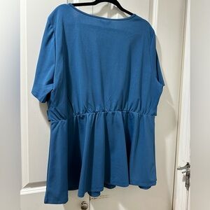 BloomChic Plus Size Square Neck Waist Tab Gathered Blouse