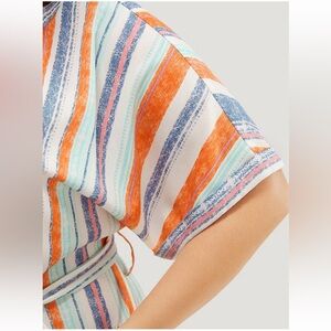 BloomChic Plus Size Striped Contrast Dolman Sleeve Button Up Pocket Belt Romper