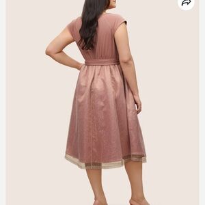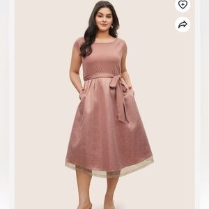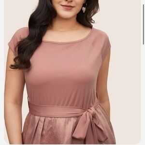 BloomChic Plus Size Textured Mesh Patchwork Belted Boat Neck Dress