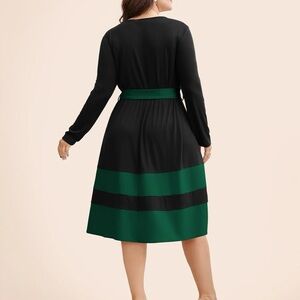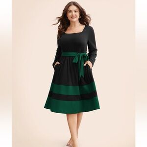 BloomChic Plus Size Two Tone Belted Bowknot Square Neck Dress