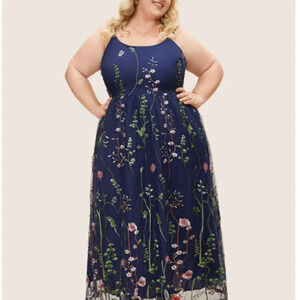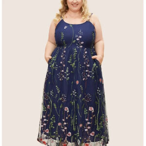BloomChic Plus Size U Neck Floral Embroidered Mesh Cami Dress 2XL