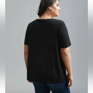 BloomChic Plus Size V-Neck Rhinestone Stretchy T-Shirt
