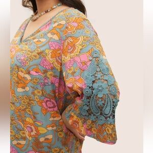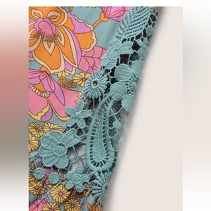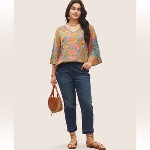 BloomChic Plus Size XL Boho Print Guipure Lace Ruffles Blouse us14-16