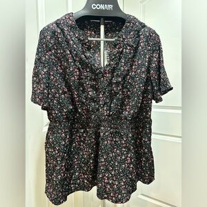 BloomChic Plus Size XL Plus Size Black Ditsy Floral Shirred Frill Trim Blouse us14-16