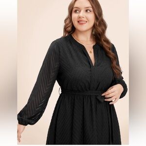 BloomChic Plus Size XL Solid Geometric Pocket Mesh Lantern Sleeve Belted Dress