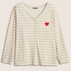 BloomChic Plus Size XL Striped Contrast Heart Embroidered Sleep Top us14-16