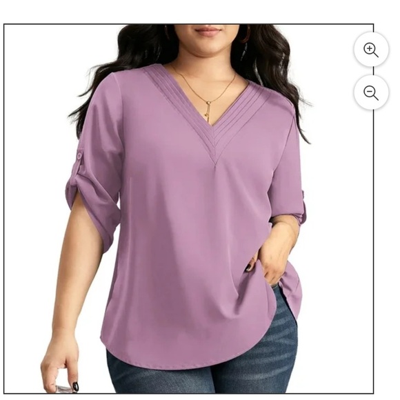 BloomChic Plus Size XL V Neck Plain Pleated Tab Sleeve Blouse us14-16