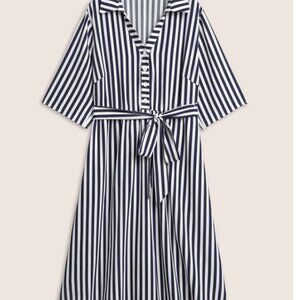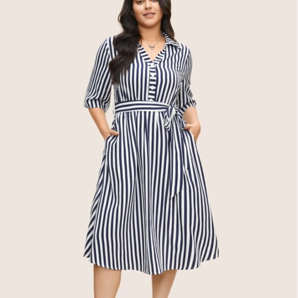 BloomChic Plus size 4XL Striped Belted Shirt Collar Button Up Dress us26