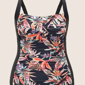 BloomChic Plus size Tropical Print Patchwork Crossover Gathered Swim Top 4XL