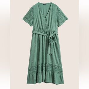 BloomChic Solid Wrap Pocket Belted Contrast Lace Ruffle Trim Maxi Dress 2XL us18