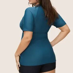 BloomChic Zipper Raglan Sleeve Ruched Swim Top