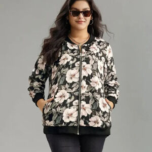 Bloomchic Floral Print Patchwork Zipper Jacket XL us 14