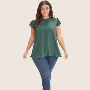This elegant green top features charming ruffle sleeves, perfect for any occasion. Its soft fabric ensures comfort and style.