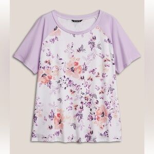 Bloomchic Plus Size 2XL Floral & Butterfly Print Raglan Sleeve T-Shirt - Lilac