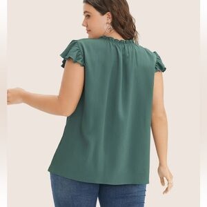This elegant green top features charming ruffle sleeves, perfect for any occasion. Its soft fabric ensures comfort and style.