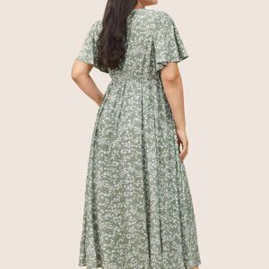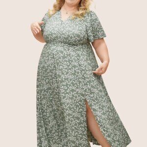 Bloomchic Plus Size Flutter Sleeve Ditsy Floral Pocket Split Maxi Dress