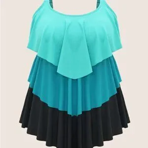 Bloomchic Plus size Colorblock Contrast Ruffle Layered Hem Tankini Top