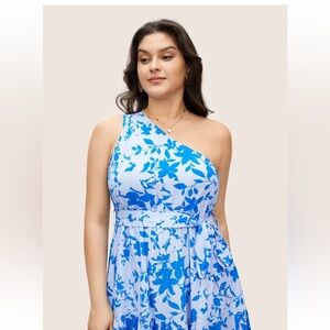 Bloomchic Silhouette Floral Print One Shoulder Belted Dress XL us14-16