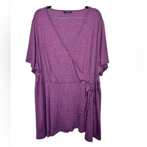 Features: Wrap design, Front tie closure, Short sleeves, Comfortable stretch fabric